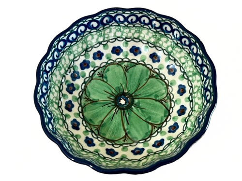 Scalloped Bowl 4.5" Unikat Green Flowers
