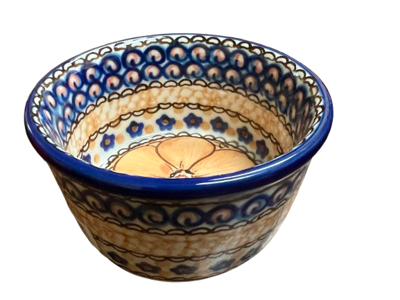 Polish Pottery ramekin (item #409-U408B) made by Ceramika Artystyczna. It measures 3.75x2". It holds about 6 ounces. It is signed by the artist - Jacek Chyla.