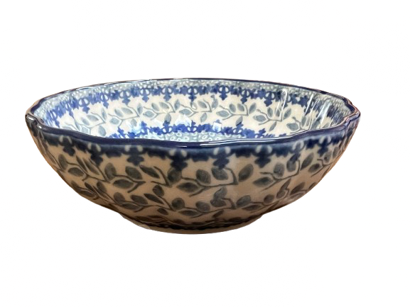 Polish Pottery scalloped bowl (item #023-U4830) made by Ceramika Artystyczna.  It measures 4.5x1.5". It is signed by the artist - Maria Starzyk.