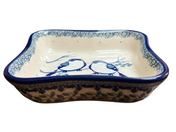 Polish Pottery scalloped bowl (item #630-U4830) made by Ceramika Artystyczna. It measures 4x1.2”. It is signed by the artist - Maria Starzyk.