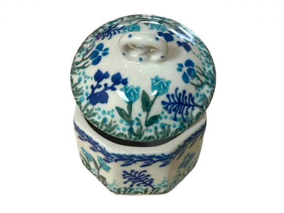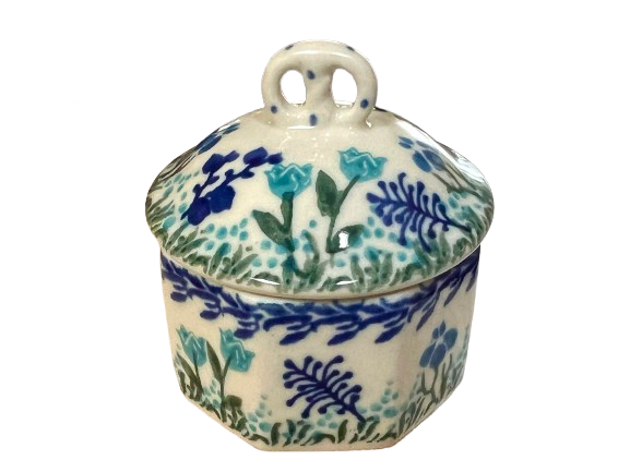 Polish Pottery mini pretzel box (item #110-2898) made by Ceramika Artystyczna.  It measures 2.75x2.75".