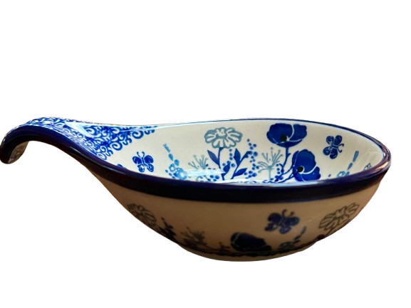 Polish Pottery spoon rest (item #174-2902) made by Ceramika Artystyczna. It measures 7x4.5x1.5".