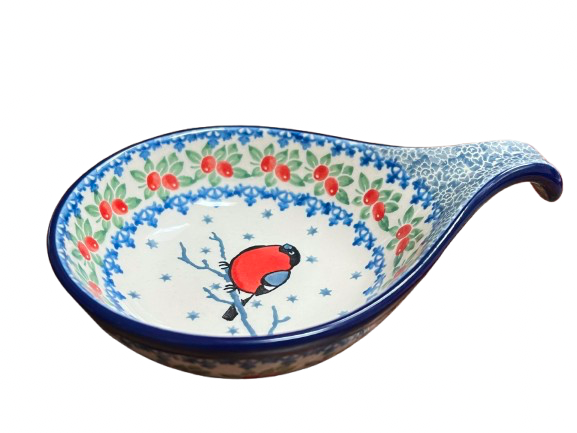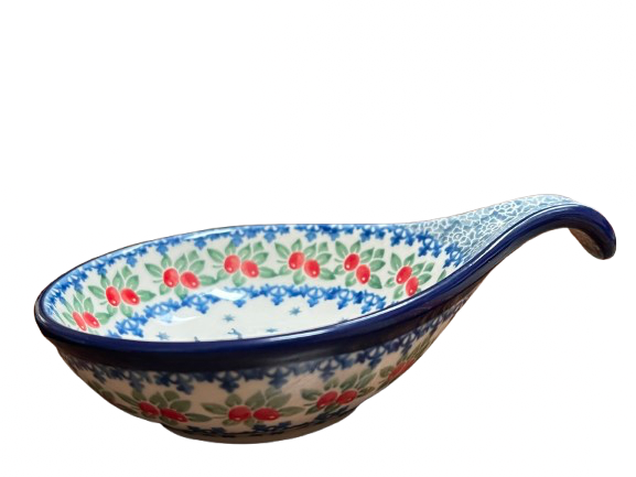 Polish Pottery spoon rest (item #174-U5179) made by Ceramika Artystyczna. It measures 7x4.5x1.5". It is signed by the artist - Maria Starzyk.